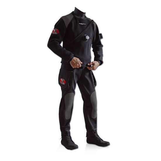 Lavet med teknologisk avancerede materialer såsom 3,5 mm H.D. Neopren med Supratex® ydre lag og, for områder med størst slid, et Kevlar®lag.