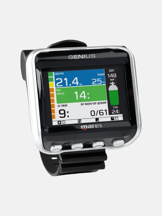 - Genopladeligt batteri: nok til ca. 30 – 50 timers dykning