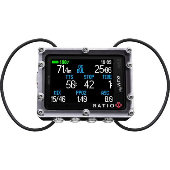 - Batteri: Genopladeligt USB Li-Po (Holder til ca. 90 timers dykning)